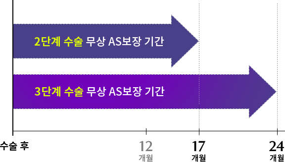 환자 별 5S복합수술 마스터 선택 종류에 따라 처음 수술 후 약 1~2년 안에 모든 수술을 마무리 합니다.