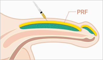 생착을 돕는 PRF를 진피 삽입과 함께 적용시킨 뒤 신경과 혈관이 진피에 생착하게되면 본래의 피부처럼 이물감이 없습니다.