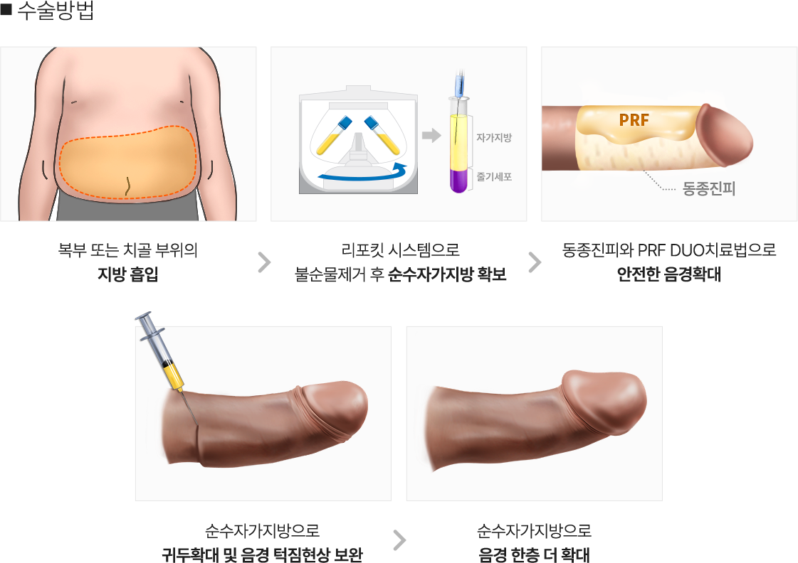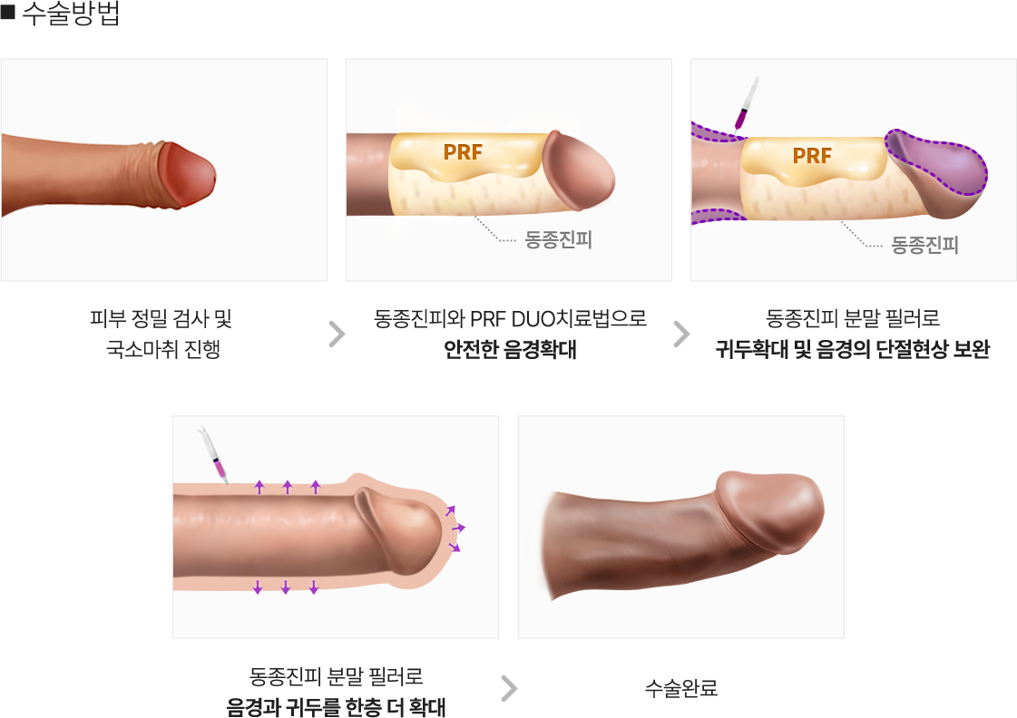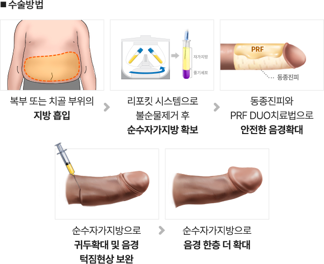 | 귀두확대 | 동종진피분말 | 동종진피분말 | 순수자가지방 |